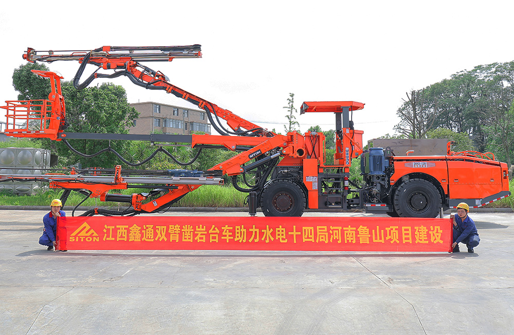 鑫通雙臂鑿巖臺(tái)車(chē)助力水電十四局河南魯山建設(shè)項(xiàng)···